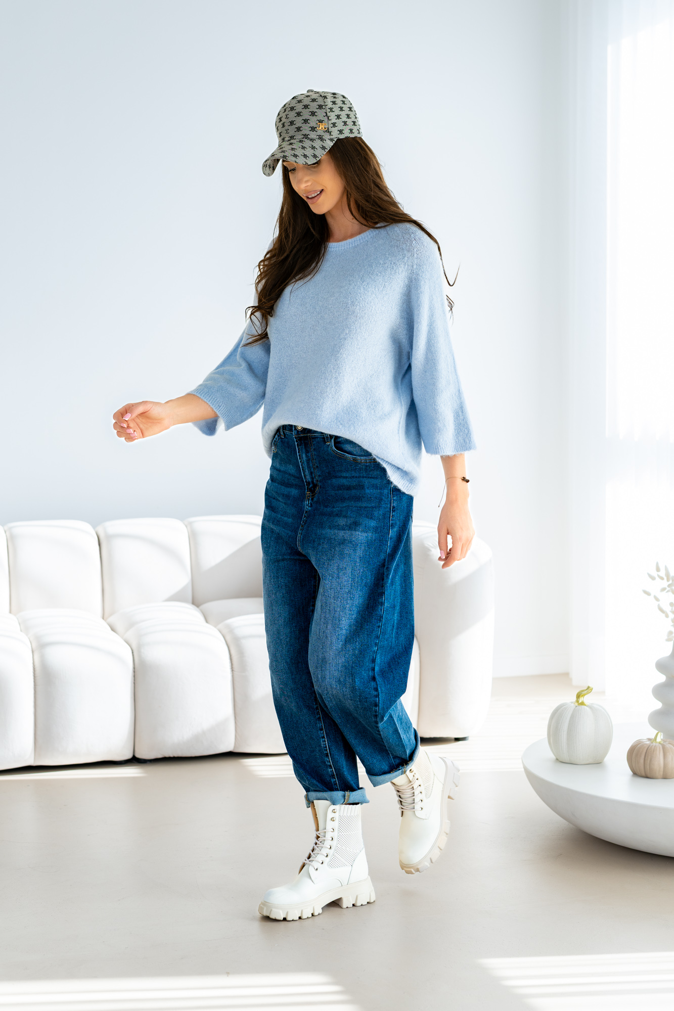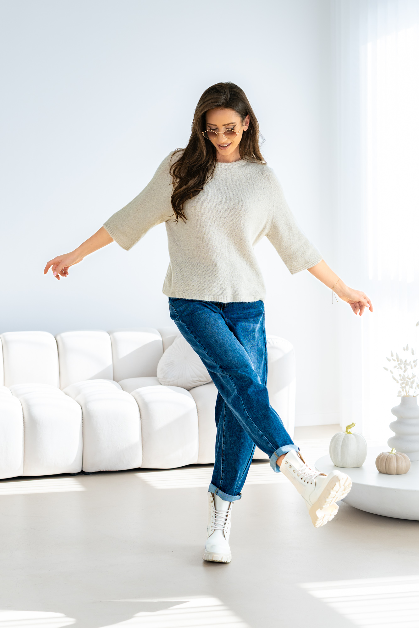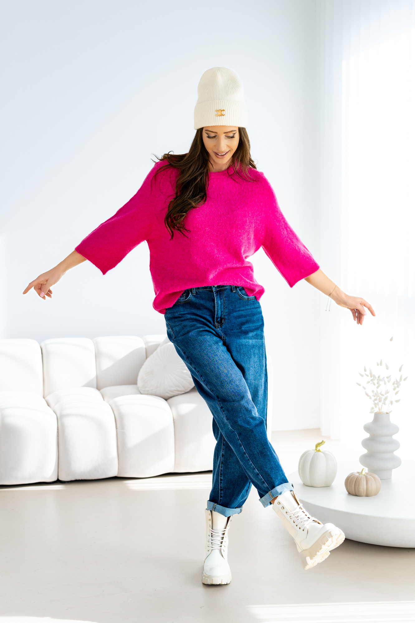 Poznaj niezwykle stylowy i komfortowy sweter oversize, stworzony z myślą o kobietach ceniących najwyższą jakość i unikalny design. Wykonany z miękkiego materiału, sweter zapewnia przyjemne ciepło w chłodniejsze dni, otulając ciało niczym lekki koc. Doskonale współgra z wieloma stylizacjami, dodając im elegancji i uroku. Sweter, dostępny w różnych rozmiarach charakteryzuje się luźnym krojem, który idealnie dopasowuje się do każdej sylwetki, oferując jednocześnie swobodę ruchów i niezrównany komfort noszenia. To idealny wybór na każdą okazję – zarówno na codzienne wyjścia, jak i na bardziej formalne spotkania.
