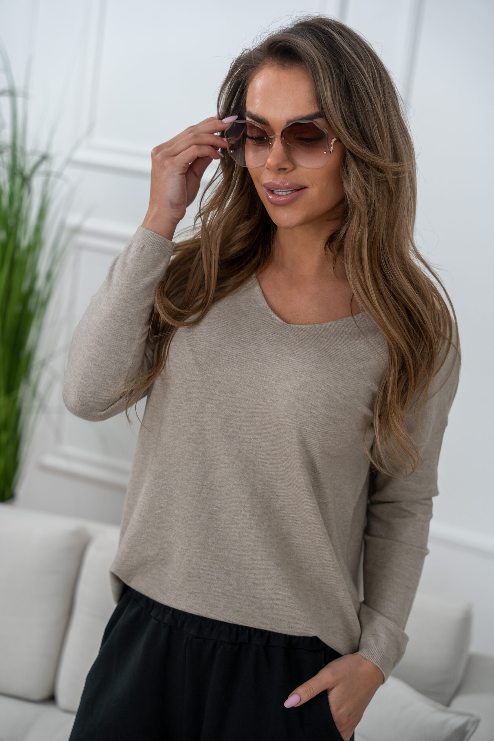 Sweterek, który stanie się Twoim ulubionym elementem garderoby. Wykonany z miękkiej dzianiny, wygrywa jakością. Subtelny beżowy odcień podkreśla naturalny wdzięk każdej kobiety, doskonale komponując się z szeroką gamą kolorystyczną innych ubrań.
