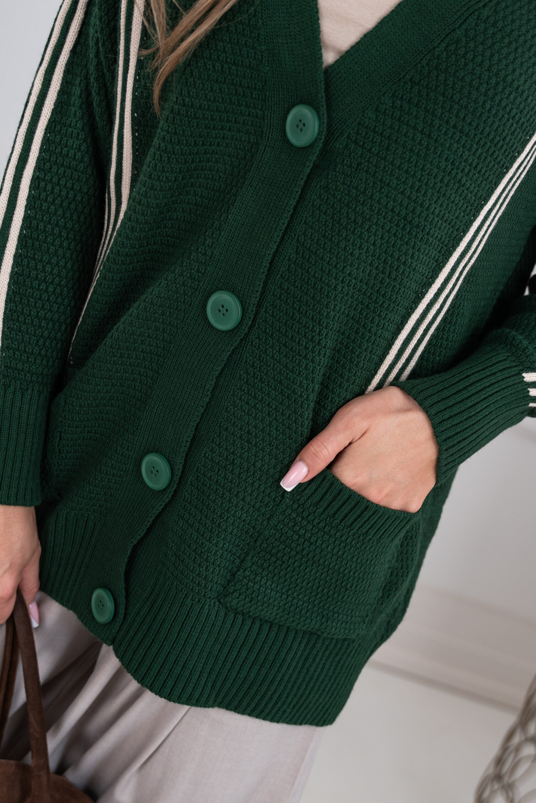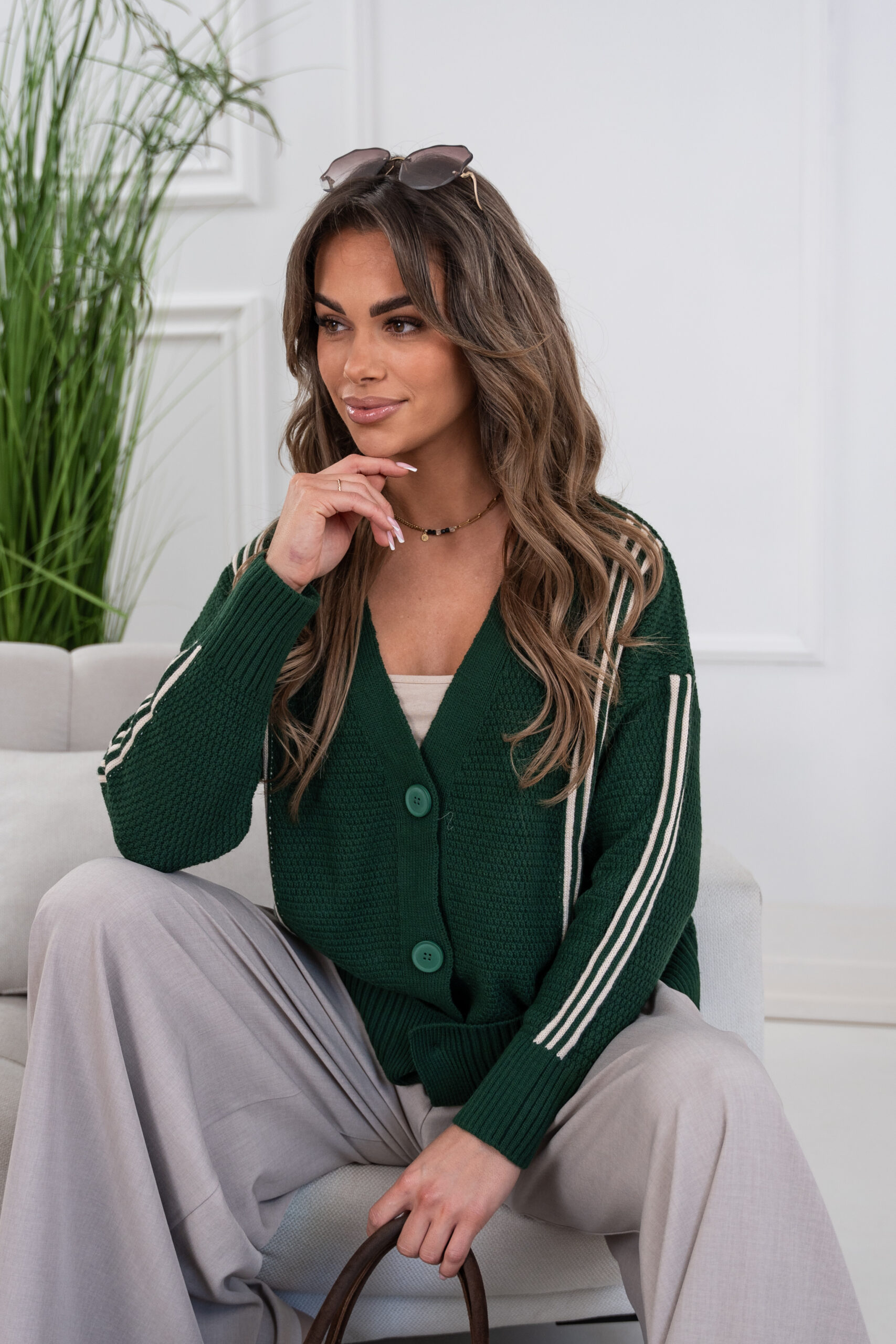 Dłuższy, prosty krój, który świetnie wydłuża sylwetkę oraz zatuszuje ewentualne niedoskonałości:-) Sweter doskonale będzie prezentował się zarówno w eleganckich, jak i codziennych stylizacjach. Modelka na zdjęciu nosi rozmiar „S” i m 174cm wzrostu.