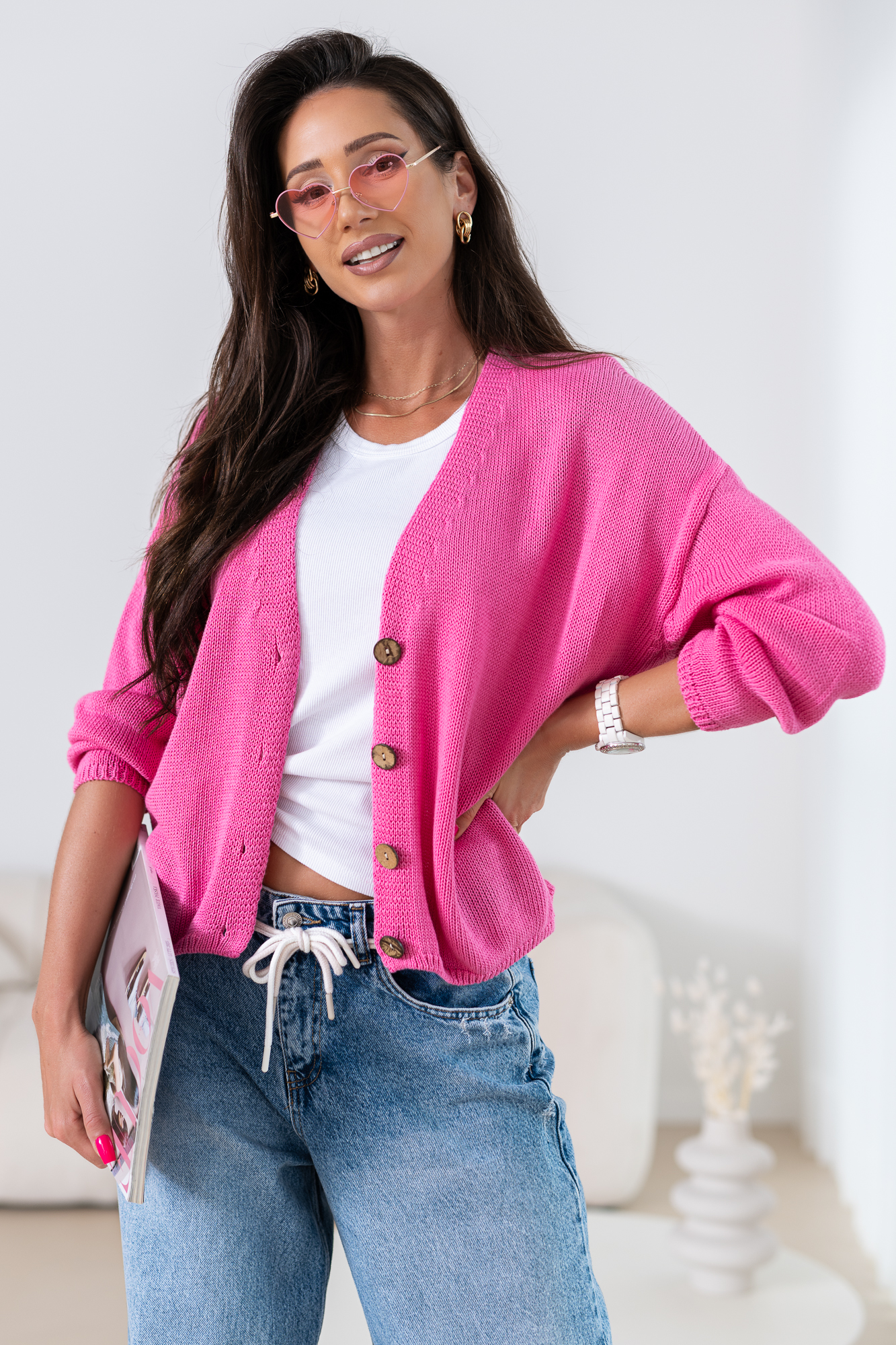 Poznaj niezwykle stylowy i komfortowy sweter oversize, stworzony z myślą o kobietach ceniących najwyższą jakość i unikalny design. Stylowy krój z klasycznymi, dużymi guzikami nie tylko ułatwia dopasowanie, ale także dodaje charakteru każdej stylizacji. Sweter, dostępny w różnych rozmiarach charakteryzuje się luźnym krojem, który idealnie dopasowuje się do każdej sylwetki, oferując jednocześnie swobodę ruchów i niezrównany komfort noszenia. To idealny wybór na każdą okazję – zarówno na codzienne wyjścia, jak i na bardziej formalne spotkania.