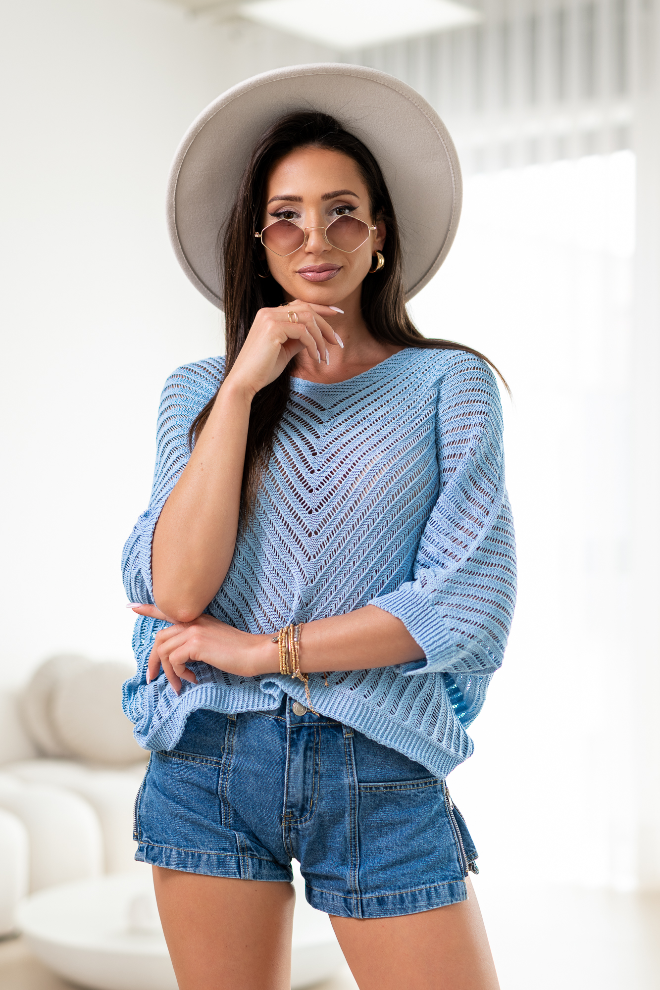 Stylowy i komfortowy sweterek/bluzka oversize, stworzony z myślą o kobietach ceniących najwyższą jakość i unikalny design. Wykonany z miękkiej przędzy, sweter zapewnia komfort i wygodę. Doskonale współgra z wieloma stylizacjami, dodając im elegancji i uroku. Sweter, dostępny w różnych rozmiarach charakteryzuje się luÅ%nym krojem, który idealnie dopasowuje się do każdej sylwetki, oferując jednocześnie swobodę ruchów i niezrównany komfort noszenia. To idealny wybór na każdą okazję – zarówno na codzienne wyjścia, jak i na bardziej formalne spotkania.