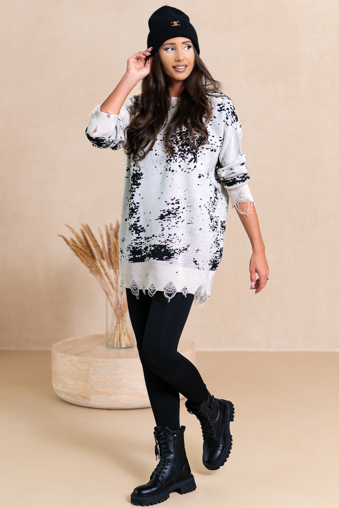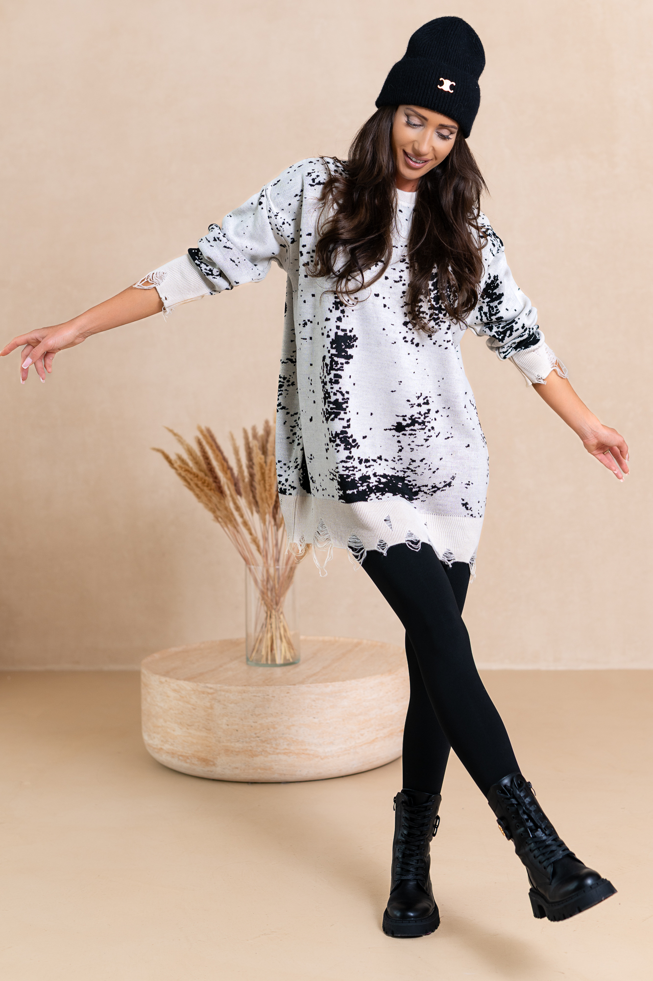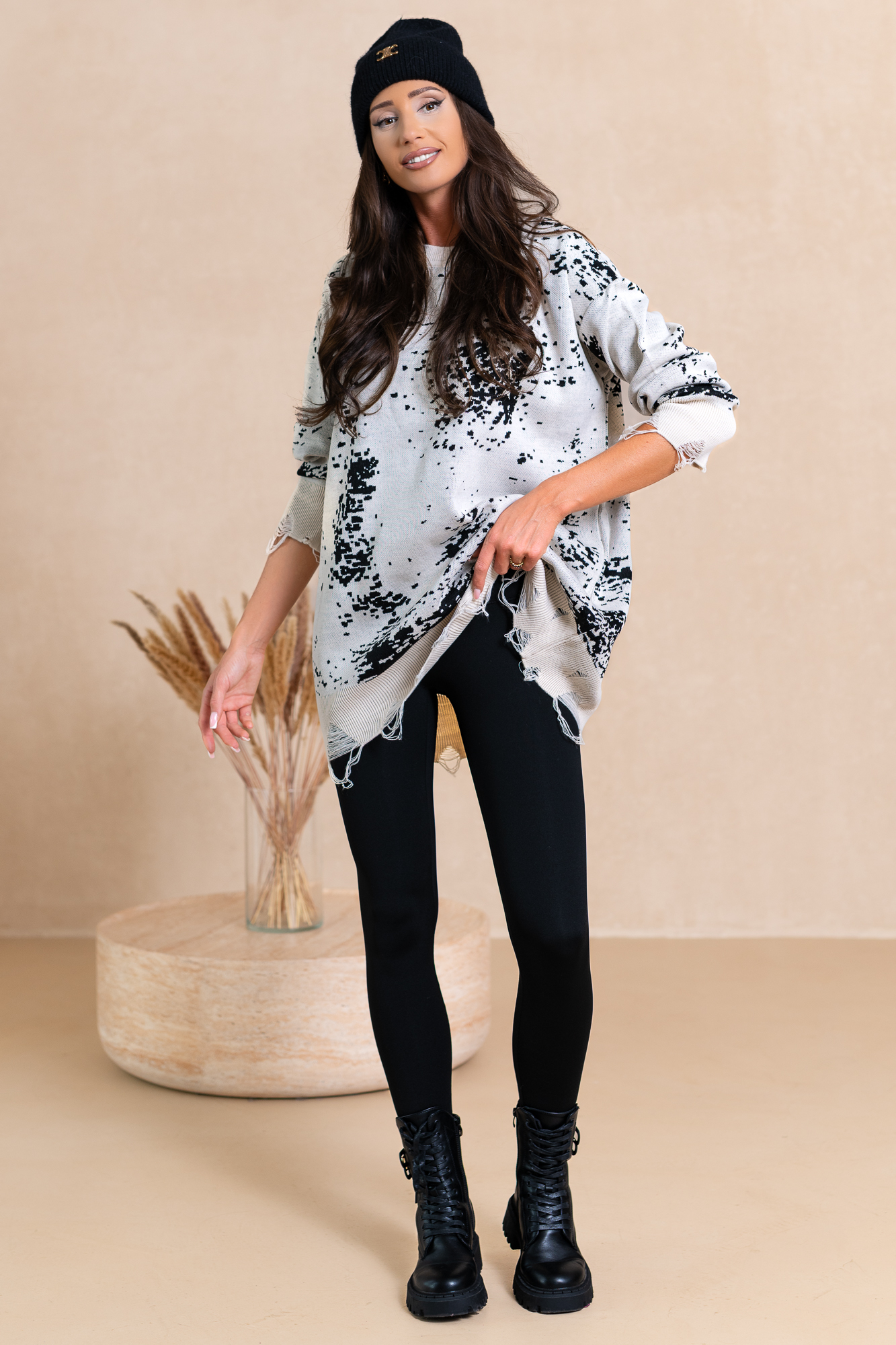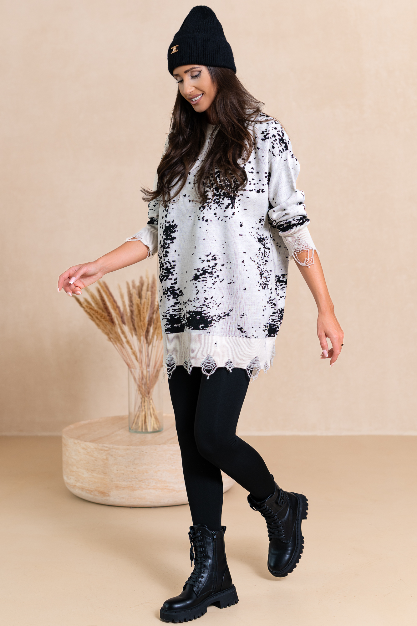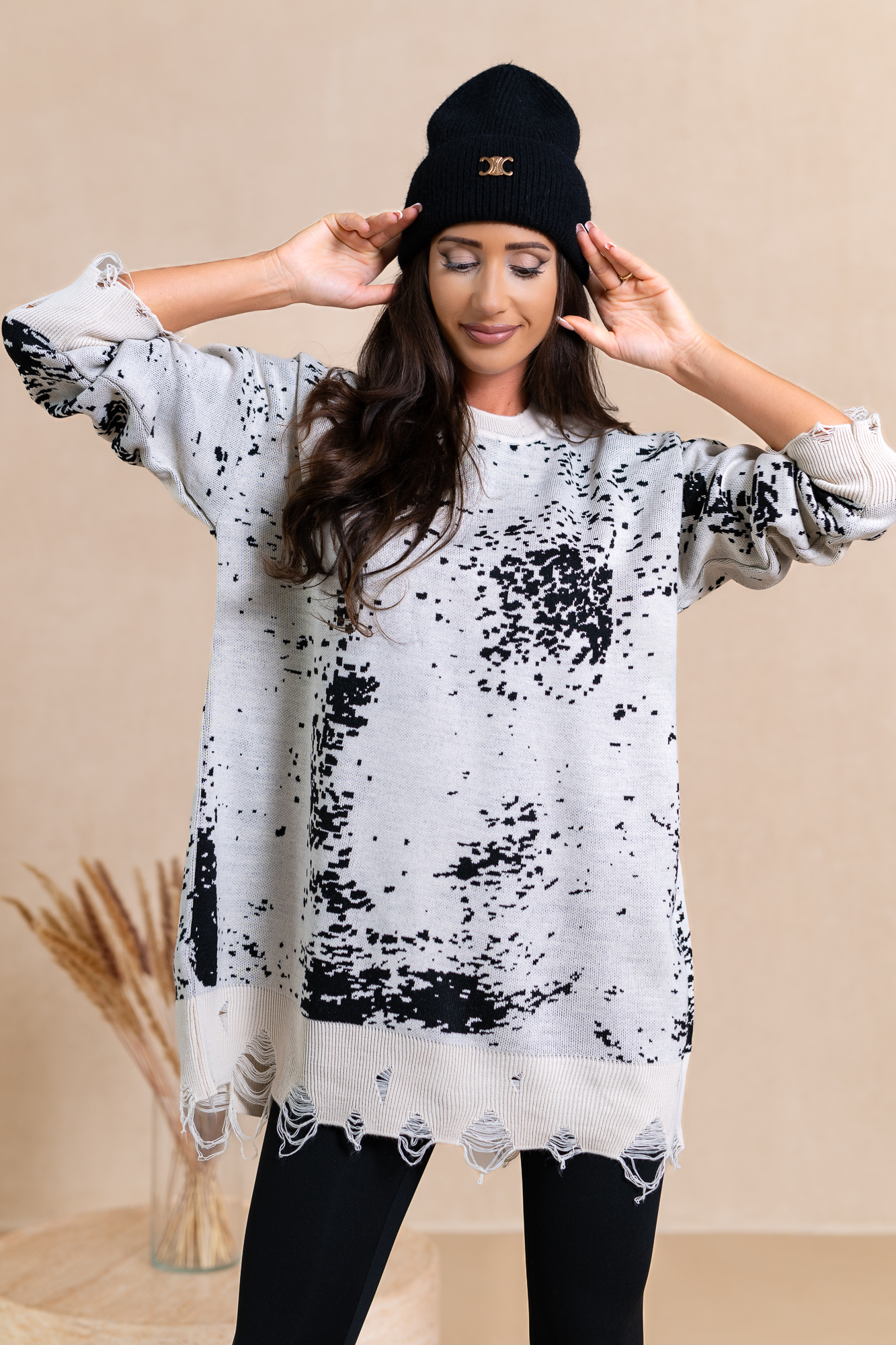 Genialny, klasyczny model swetra  w najmodniejszym wzorze tego sezonu. Zapewni komfort w chłodniejsze JESIENNE dni. Świetnie będzie się prezentował z jeansami, legginsami lub  sam: -)  Luźniejszy fason sprawią, że pokochasz go za wygodę noszenia.