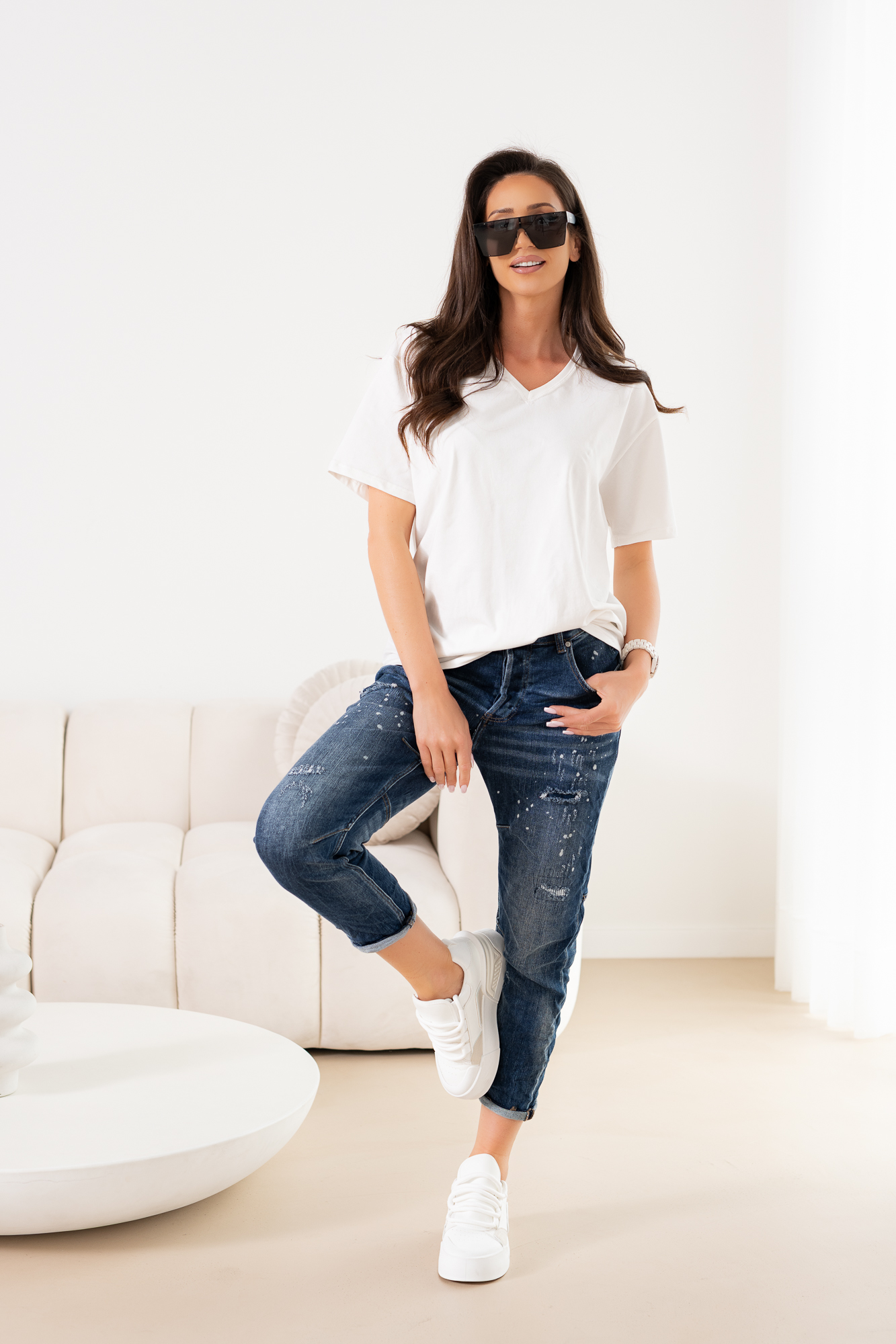 T-shirt/bluzka typu basic, klasyczny i ponadczasowy, prosty przedłużony krój. T-shirt uszyty z najwyższej jakości bawełny. Pasuje do wszystkiego i stanowi podstawową bazę do wielu stylizacji. POLSKA PRODUKCJA!
