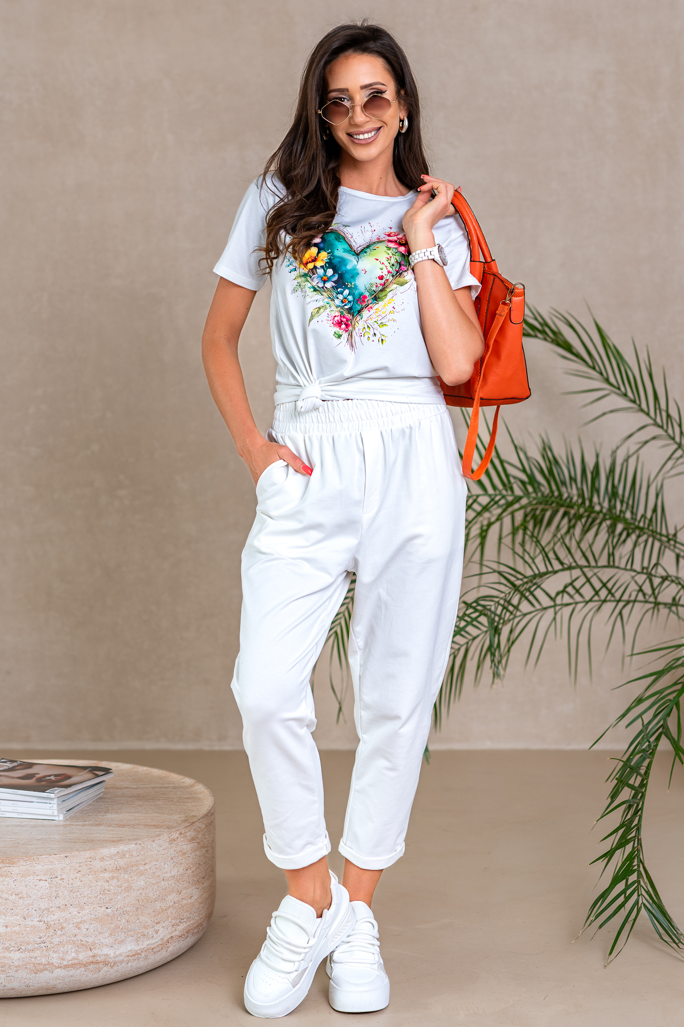T-shirt/bluzka typu basic, z niebanalnym nadrukiem. Pasuje do wszystkiego i stanowi podstawową bazę do wielu stylizacji. Świetnie pasuje do jeansów, spodni czy spódnicy. Równie dobrze wygląda w stylizacji z marynarką lub kardiganem. Idealny na każda porę roku, na spotkanie z przyjaciółmi lub do pracy.
