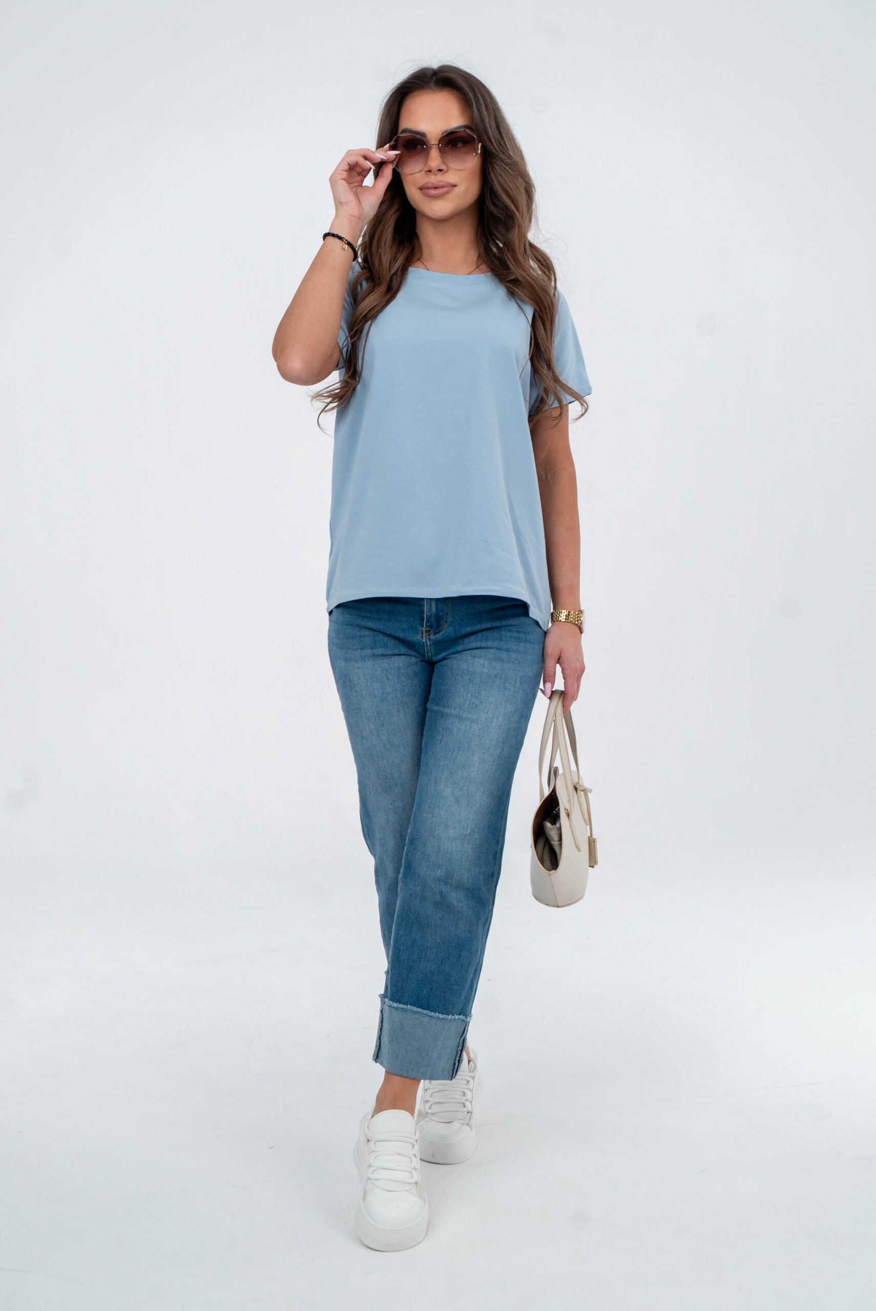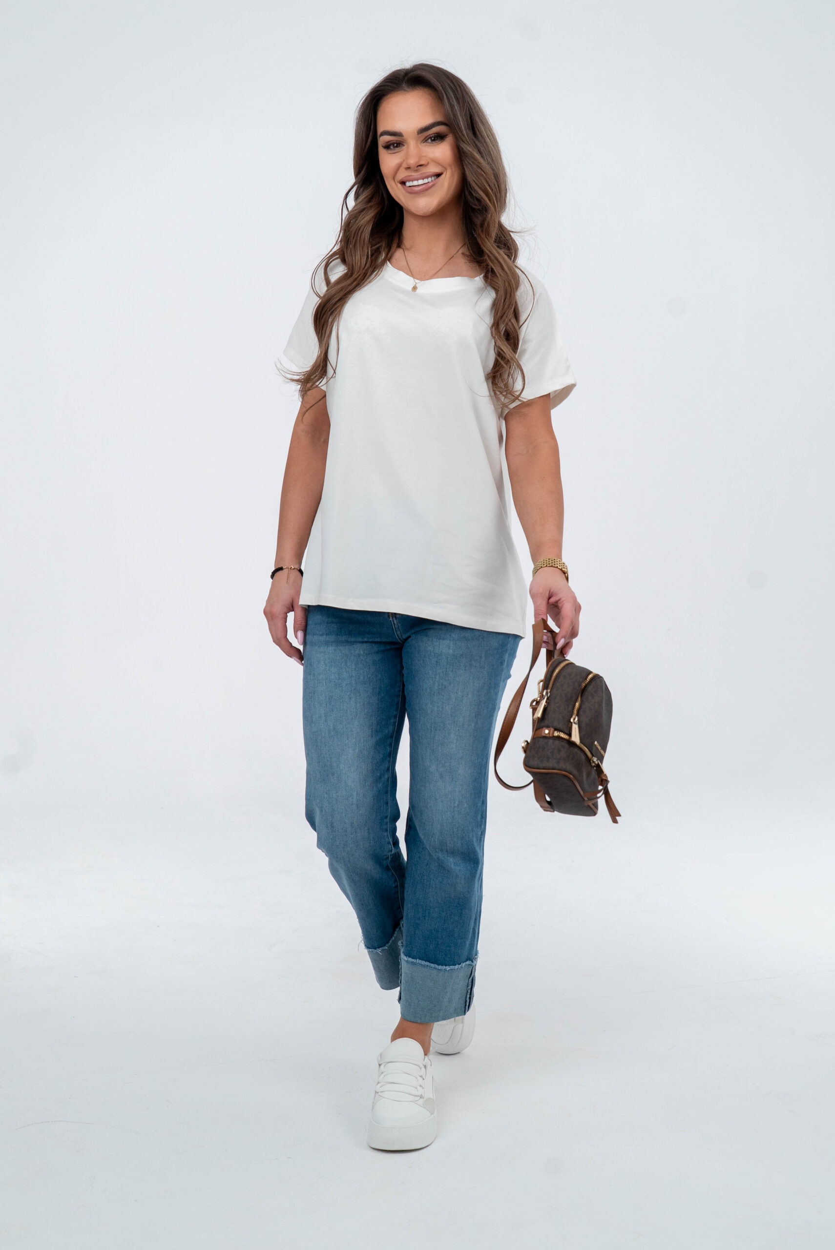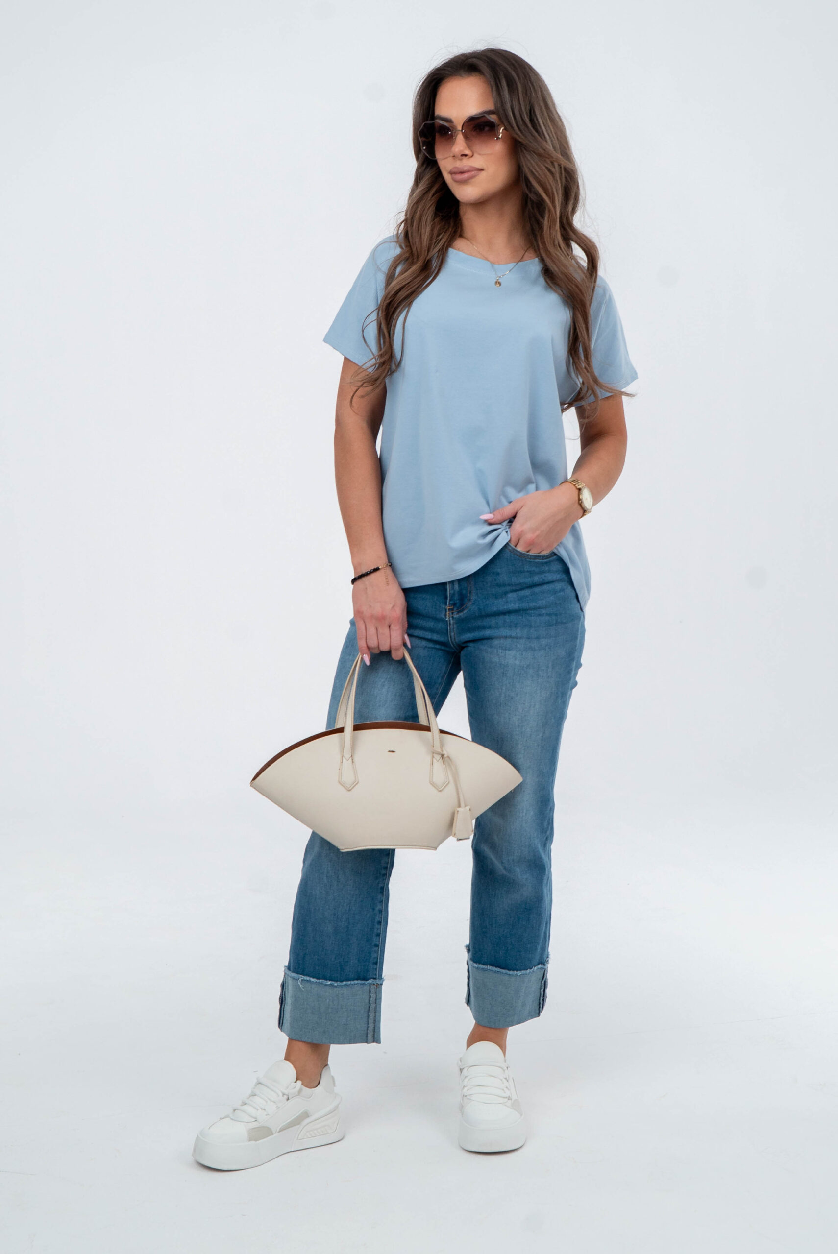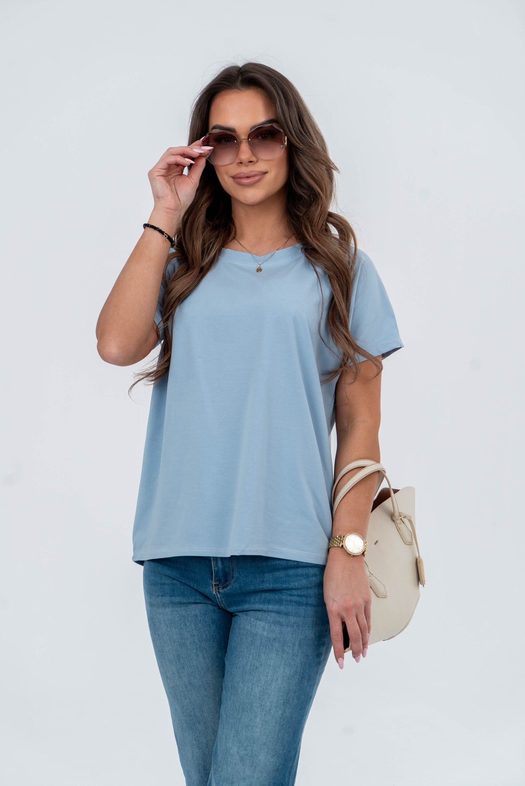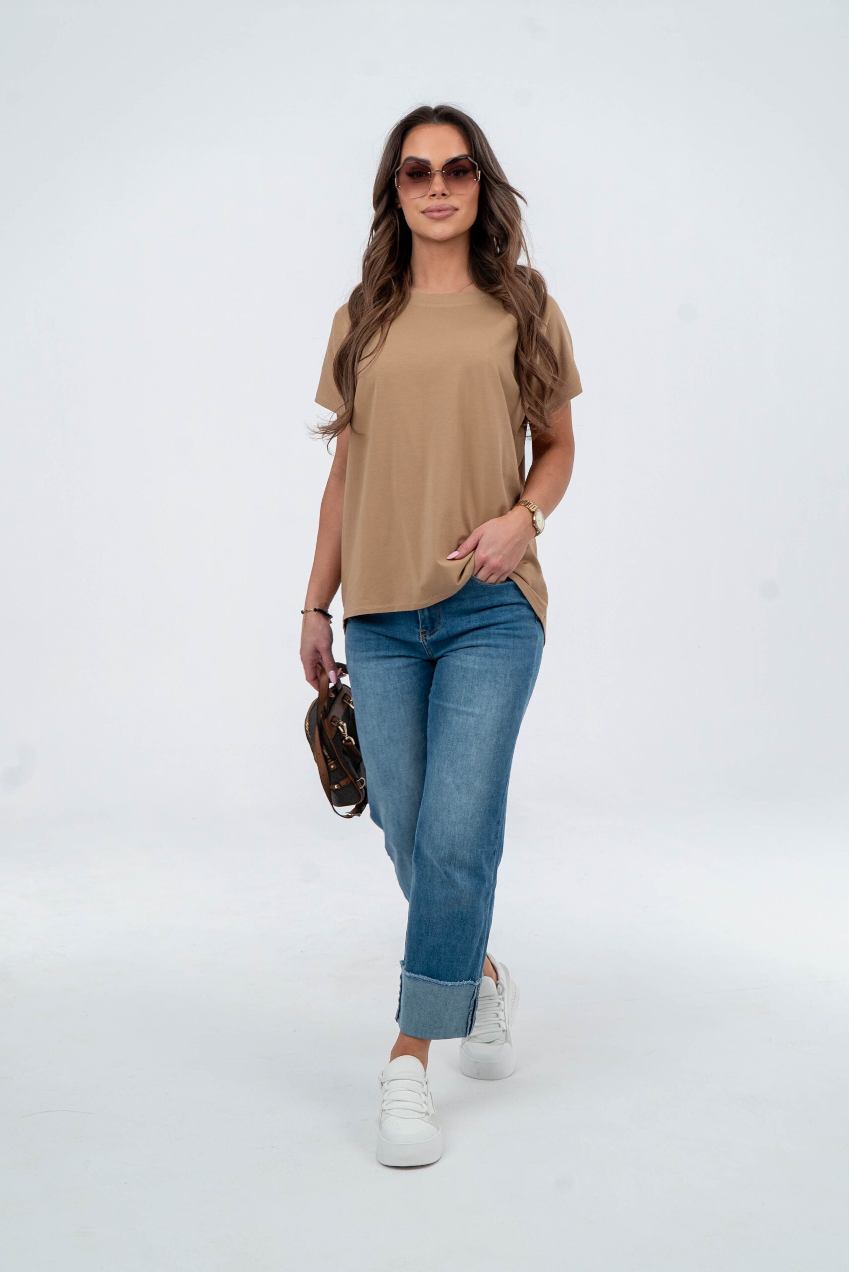T-shirt/bluzka typu basic, klasyczny i ponadczasowy, prosty przedłużony krój. T-shirt uszyty z najwyższej jakości bawełny. Pasuje do wszystkiego i stanowi podstawową bazę do wielu stylizacji.