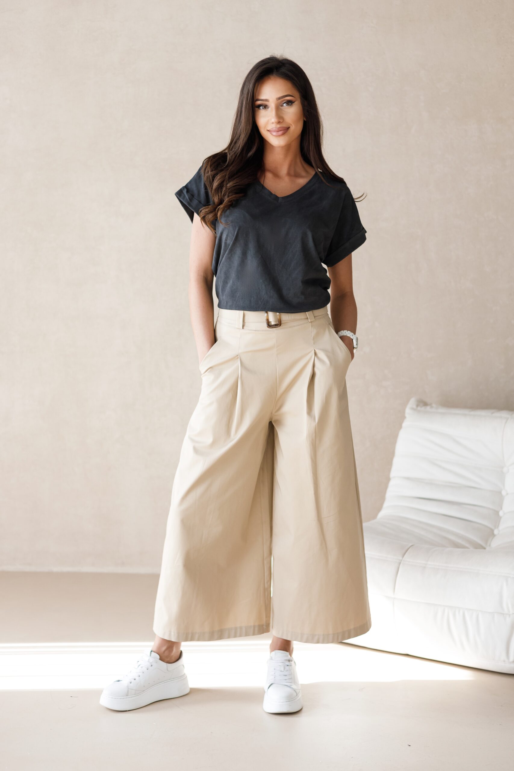T-shirt/bluzka typu basic, klasyczny i ponadczasowy, prosty przedłużony krój. T-shirt uszyty z najwyższej jakości bawełny. Pasuje do wszystkiego i stanowi podstawową bazę do wielu stylizacji.