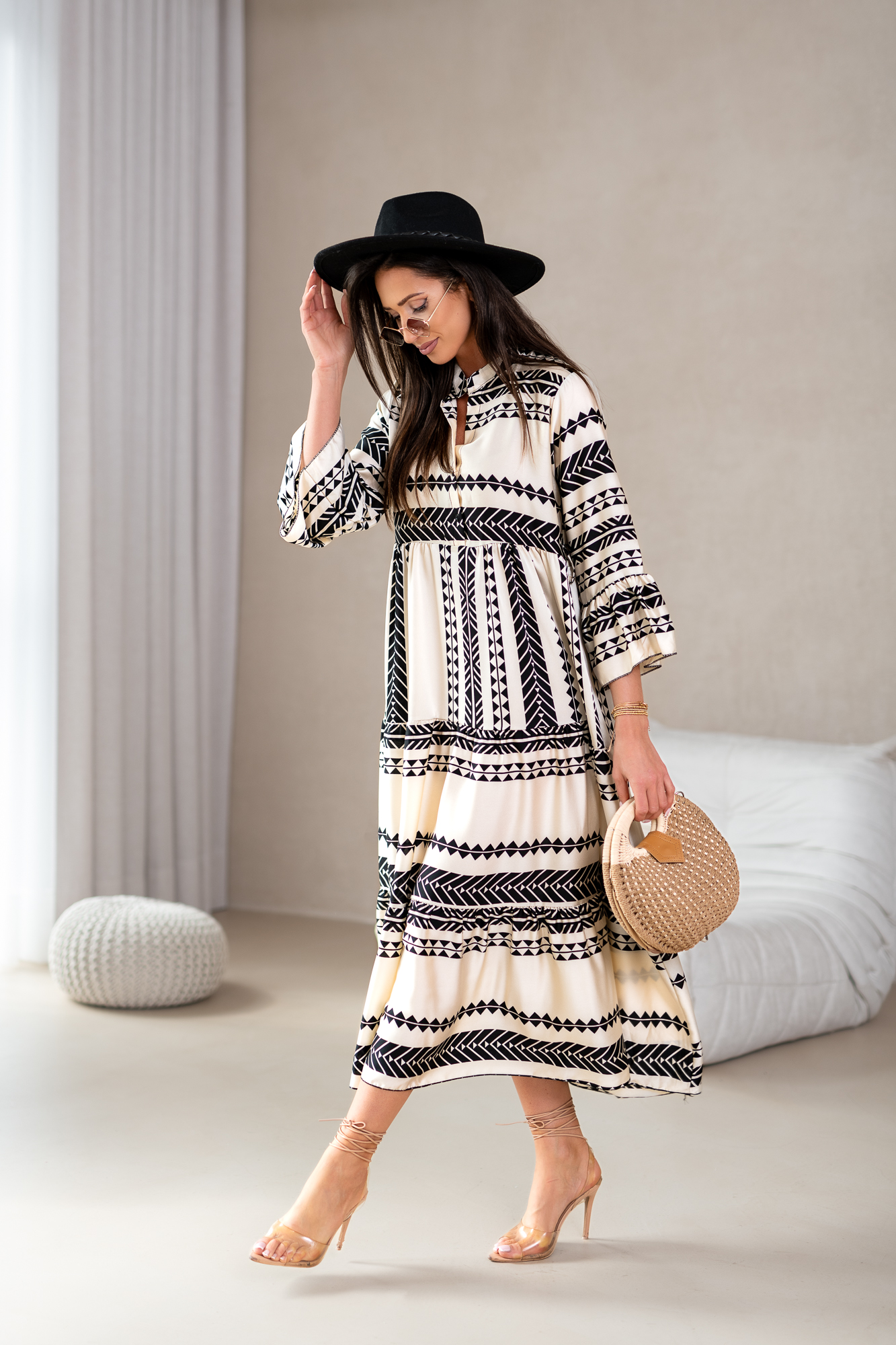 Mała, pleciona torebka w kształcie kulki, z rączką. Zapinana na zamek błyskawiczny. W środku posiadająca małą kiszonkę. Dodatkowo dopinany dłuższy pasek. Torebkę można nosić w ręce lub na  długim pasku.