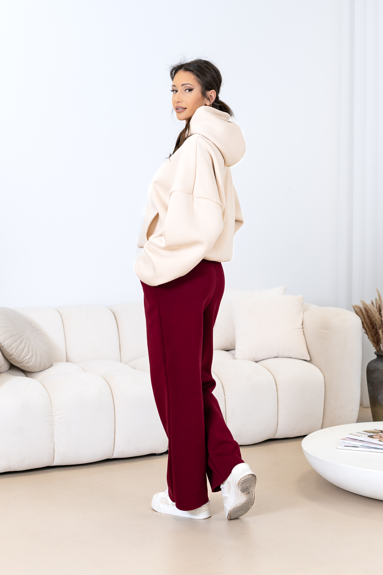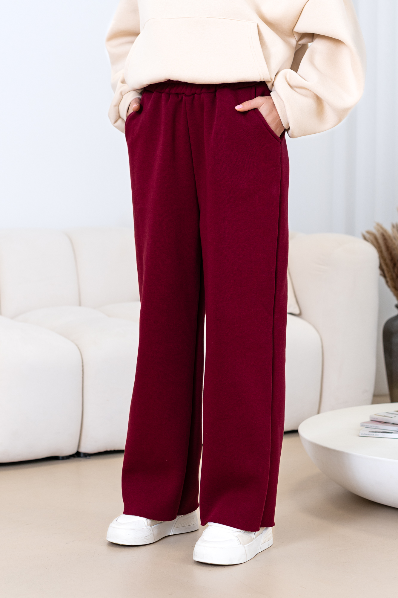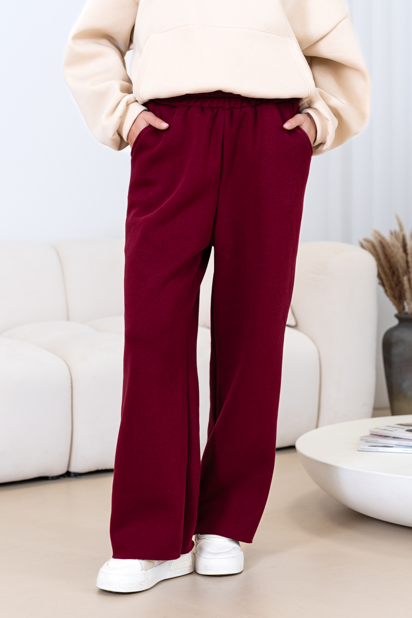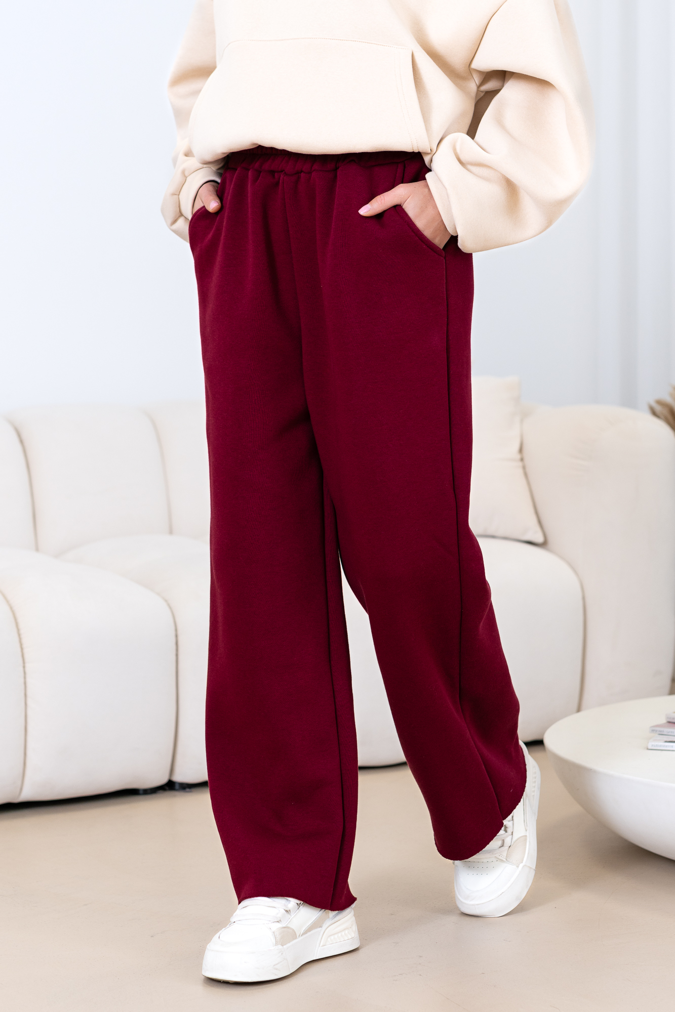 Uszyte z najwyższej jakości bawełnianej dzianiny dresowej drapanej od wewnątrz, która jest wyjątkowo przyjemna w noszeniu i otula ciepłem. Spodnie wyróżniają się minimalistycznym krojem oraz praktycznymi kieszeniami, które podkreślają ich uniwersalny charakter.