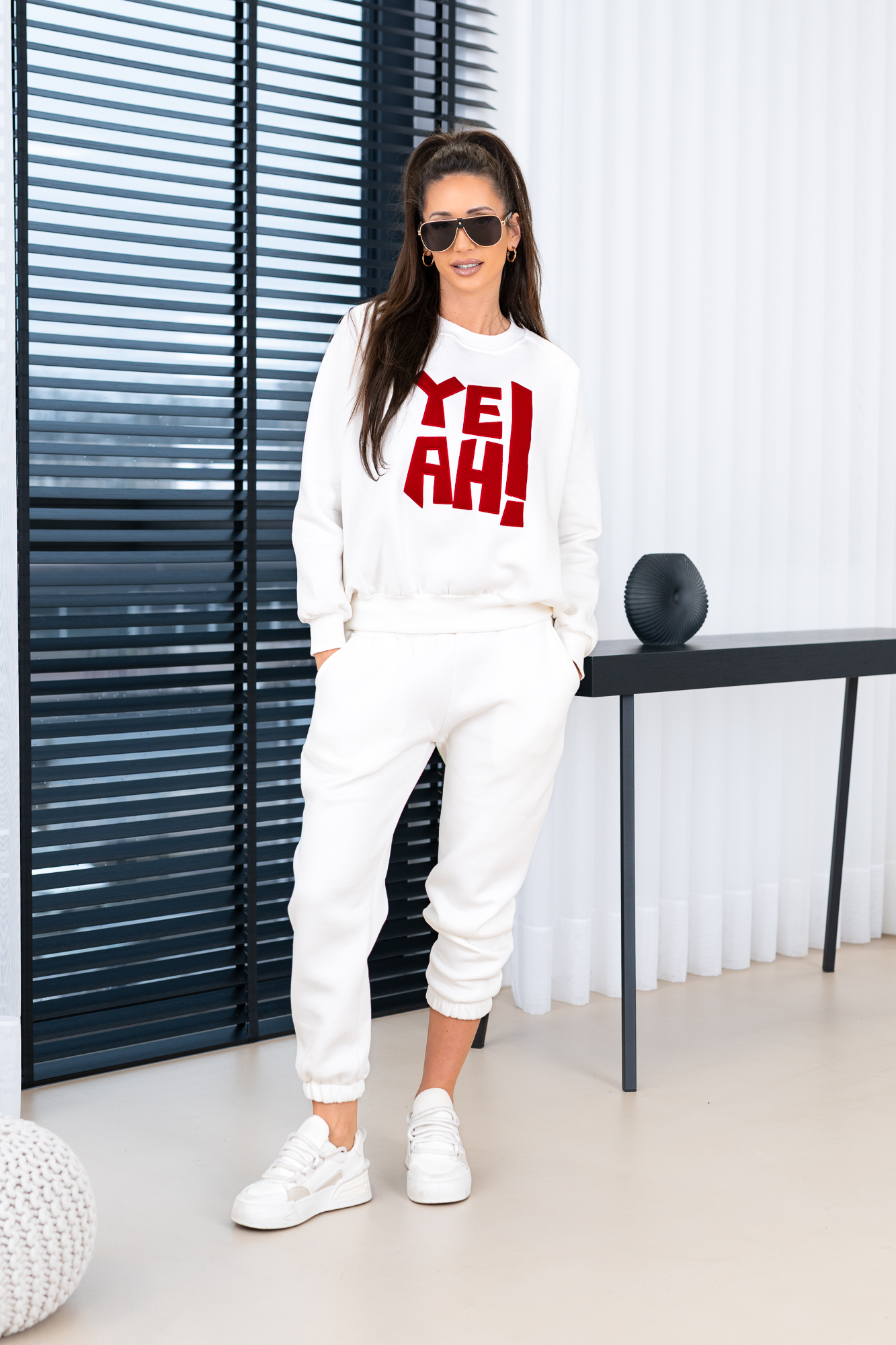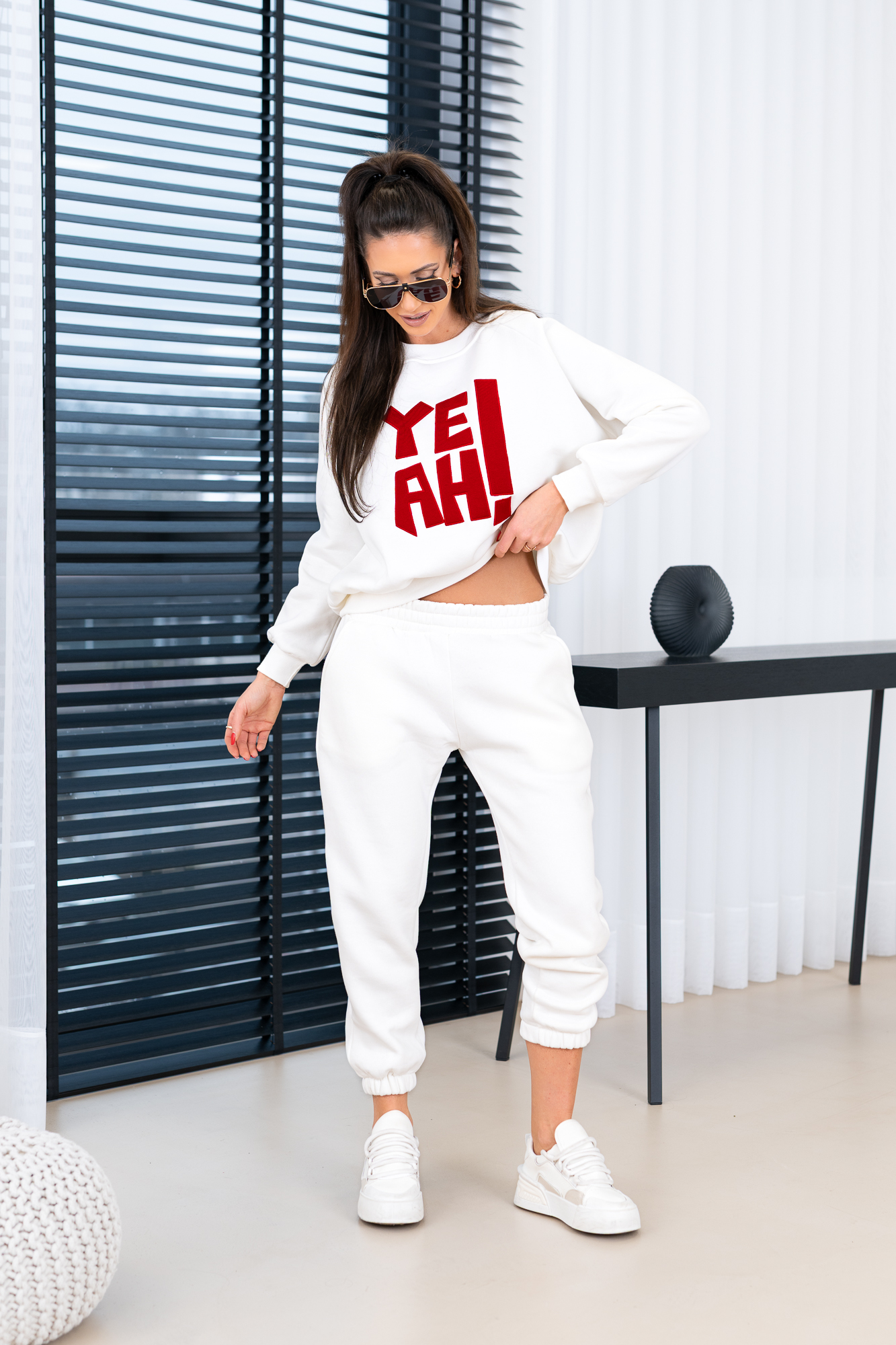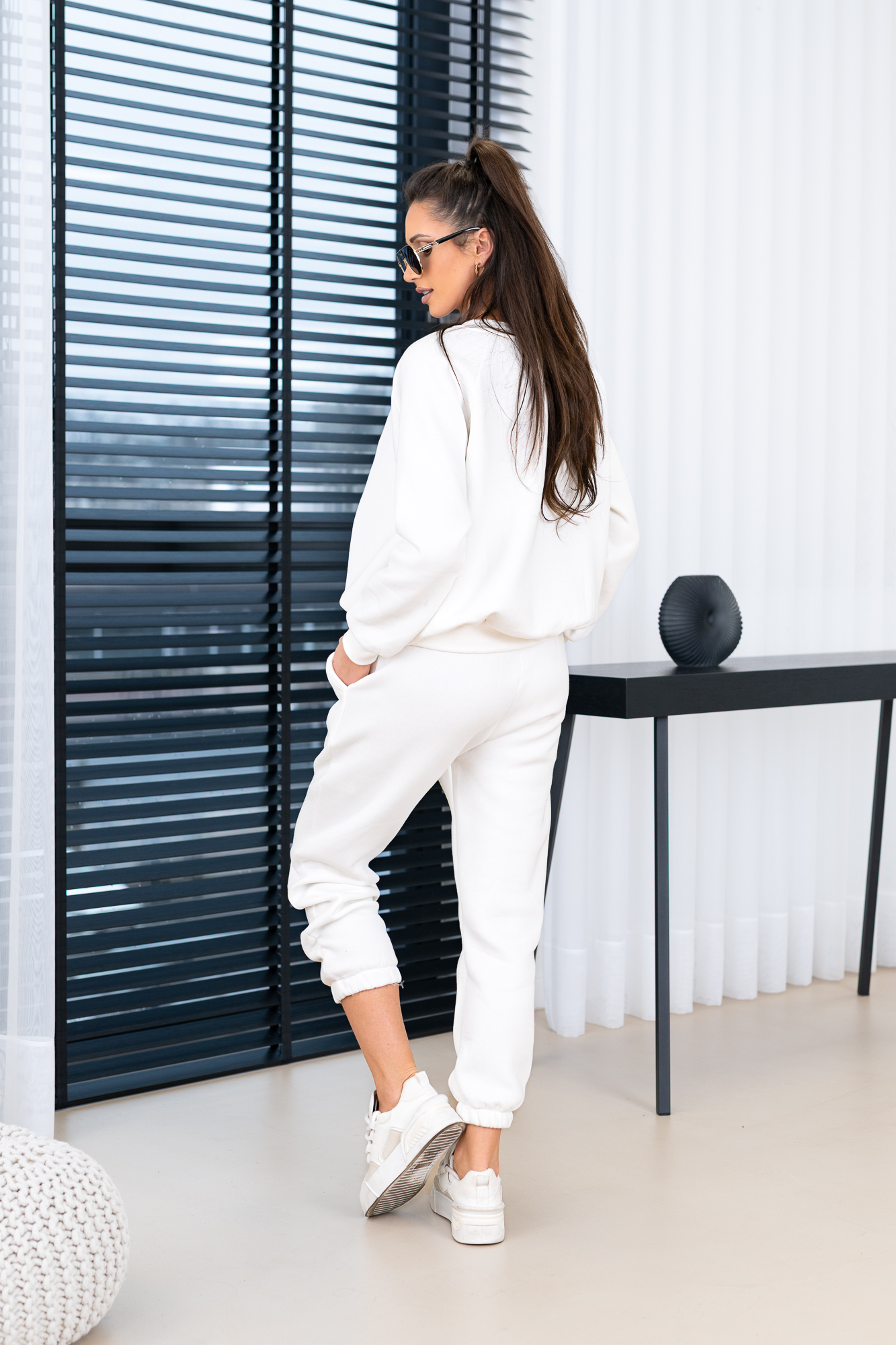 Zestaw dresowy – bluza oversize oraz spodnie. Kompletny zestaw uszyty z najwyższej jakości bawełnianej dzianiny dresowej drapanej od wewnątrz, która jest wyjątkowo przyjemna w noszeniu i otula ciepłem. W skład kompletu wchodzi nasza viralowa, oversize’owa bluza oraz luźne spodnie  z gumką w pasie i na nogawkach. Bluza posiada ściągacz, który umożliwia efektowne bluzowanie i dopasowanie do sylwetki. Spodnie wyróżniają się minimalistycznym krojem oraz praktycznymi kieszeniami, które podkreślają ich uniwersalny charakter.
